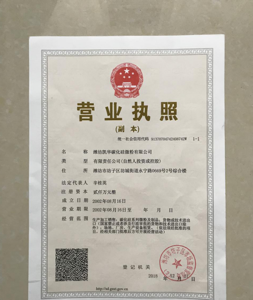 濰坊凱華碳化硅微粉有限公司成立于2002年,國家高新技術企業,公司占地40畝,標準廠房19000平方,辦公樓、研發(fā)處2000平方,年生產能力3萬噸。一直從事陶瓷級微粉的生產銷售,所生產的超細碳化硅微粉具有純度高、粒形好、穩(wěn)定性強等特點,主要用于反應燒結、無壓燒結、硅碳棒新工藝、重結晶燒結、蜂窩陶瓷、機車制動裝置、研磨拋光、金屬防腐表面噴涂、納米隔熱保溫材料等領域。標準產品有:F240、F1200、W40、W28、W20、W14、W10、W7、W5、W3.5、 W2.5、W2、W1.5、W0.5、5S、D3E、100F、RS07、RS100及整形高密度系列綠碳化硅微粉......